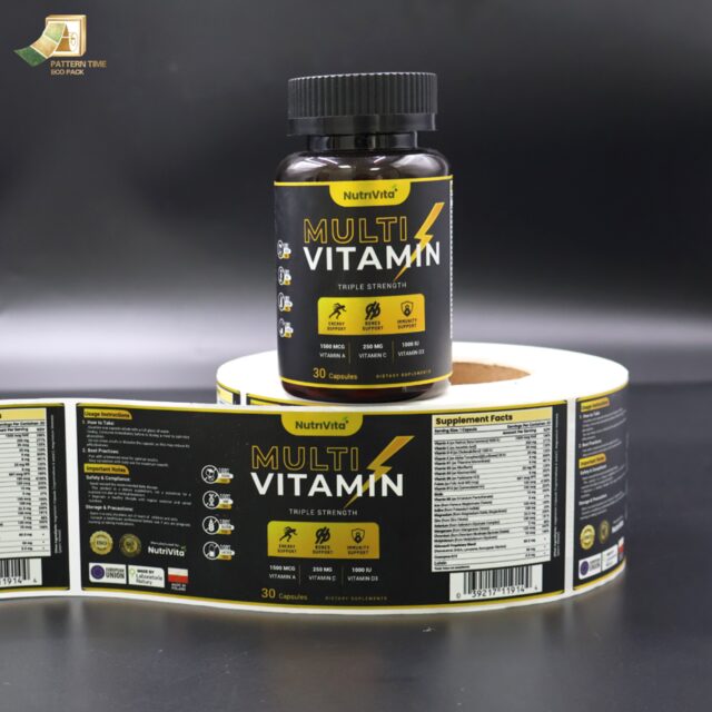 Custom Waterproof Self-adhesive Health Care Packaging Label Roll Vitamin Supplement Labels for Medical Bottle